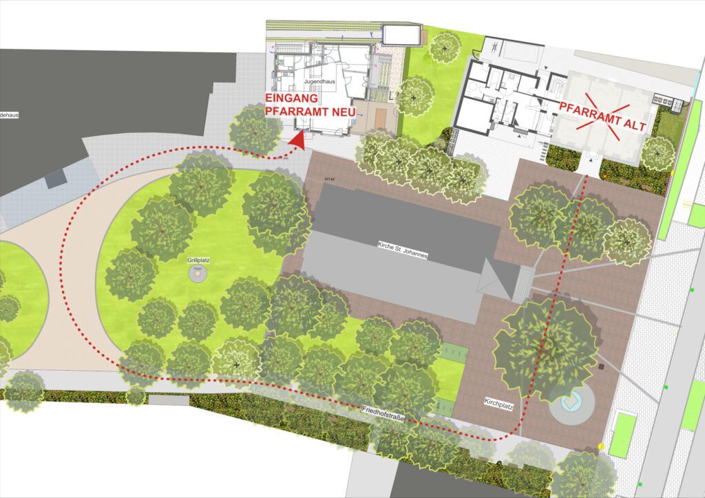 Das Pfarramt befindet sich wärend der Sanierungsarbeiten im neuen Jugendhaus.